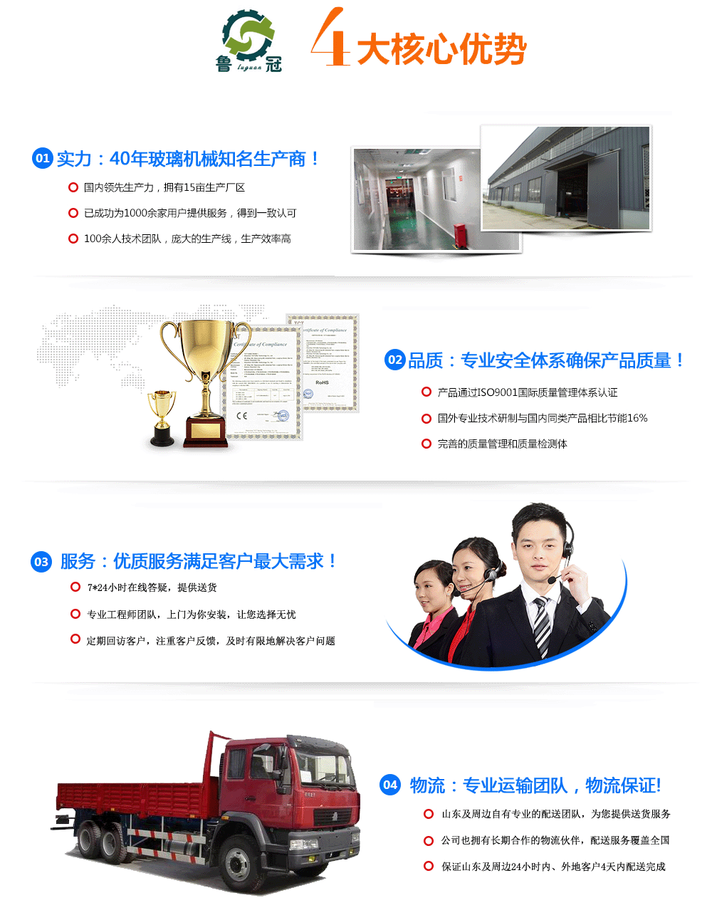山東魯冠玻璃機(jī)械有限公司,是從事玻璃機(jī)械的老牌企業(yè),在我國(guó)玻璃制品行業(yè)上享有較高的聲譽(yù)。我公司具備良好的整體素質(zhì)和技術(shù)力量,設(shè)備齊全,擁有完善的質(zhì)量管理和質(zhì)量檢測(cè)體系。主營(yíng)產(chǎn)品:玻璃加料機(jī),斜毯式玻璃加料機(jī),懸掛式玻璃加料機(jī),擺桿式玻璃加料機(jī),裹入式全密封加料機(jī)等。 企業(yè)始終堅(jiān)持“科學(xué)技術(shù)是主要生產(chǎn)力”的主導(dǎo)思想,不斷加大新產(chǎn)品研發(fā)力度,玻璃機(jī)械產(chǎn)品的開(kāi)發(fā)生產(chǎn),為適應(yīng)玻璃制品行業(yè)發(fā)展需要,相繼先后研制...